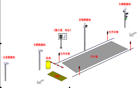 車輛上秤之前,信號燈為綠色;當車輛上秤后,信號燈為紅色;車輛停穩后,司機下車刷卡,計算機管理系統調出該車輛的車號及相關的預置信息(如車牌號、發貨單位,收貨單位,裝卸貨信息,貨物流向等),稱重儀表檢測車輛的重量,攝像機同時抓拍車頭和車尾,車箱,全景四組圖像,并和重量信息一起保存,系統將稱重結果存入數據庫;出口道閘抬起,響鈴提示車輛下秤,當出口地感檢測到車輛離開時,信號燈變綠色,出口道閘落下。